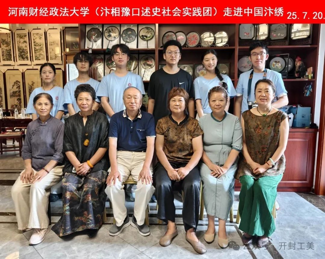 2025年7月20日,河南财经政法大学汴相豫口述史社会实践团在王璇和王潇然的带领下,冒着署酷一行六人走进中国汴绣生产基地—汴州绣庄开展社会实践研学活动。